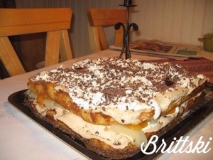 Jag gjorde två kakor och lade päron och grädde emellan.