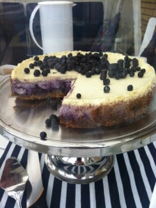 Låt kakan svalna och förvara den i kylskåp. Dekorera med blåbär.