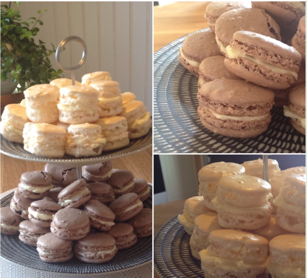 Lägg krämen mellan 2 makroner och tryck försiktigt ihop.