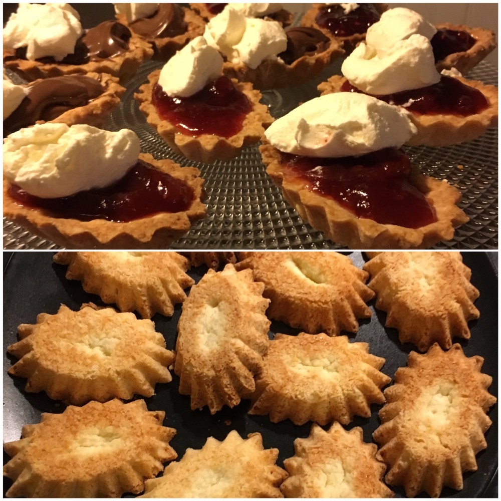 Fyll musslorna med sylt eller Nutella och grädde.
